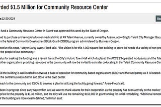 Part 1 of a Watchdog series monitoring the City's process of opening a Community Resource Center in Talent.