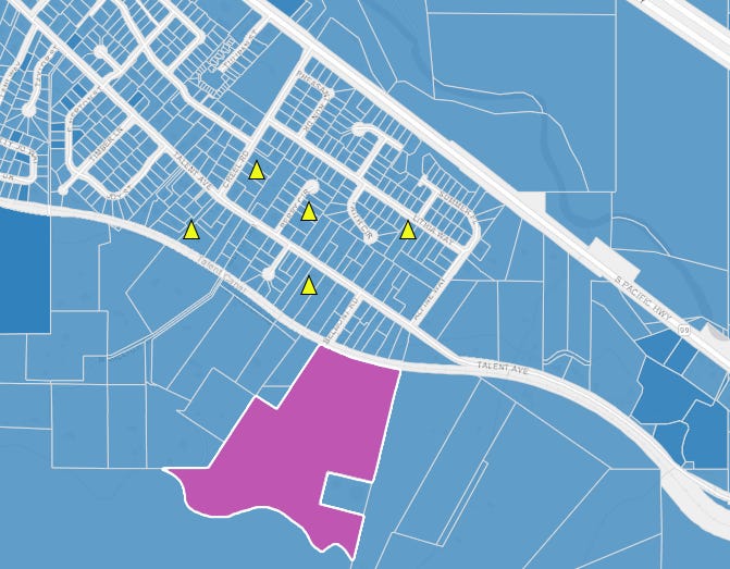 It’s no secret that development of that area didn’t have a ton of support in Talent in general, but among many of the folks with homes and property nearby, it was (and is) an especially unpopular proposal. Social media and public hearings have at times been loud with residents objecting to the subdivision being built in that location, owing mostly to the perceived taxpayer costs, safety risks, and the disruptions and inconveniences they believed would be created by its construction.